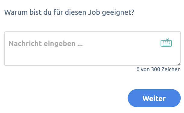 Hast du einen passenden Job gefunden, so musst du im nächsten Schritt nur noch wenige Fragen beantworten, um deinen Bewerbung abzuschließen.