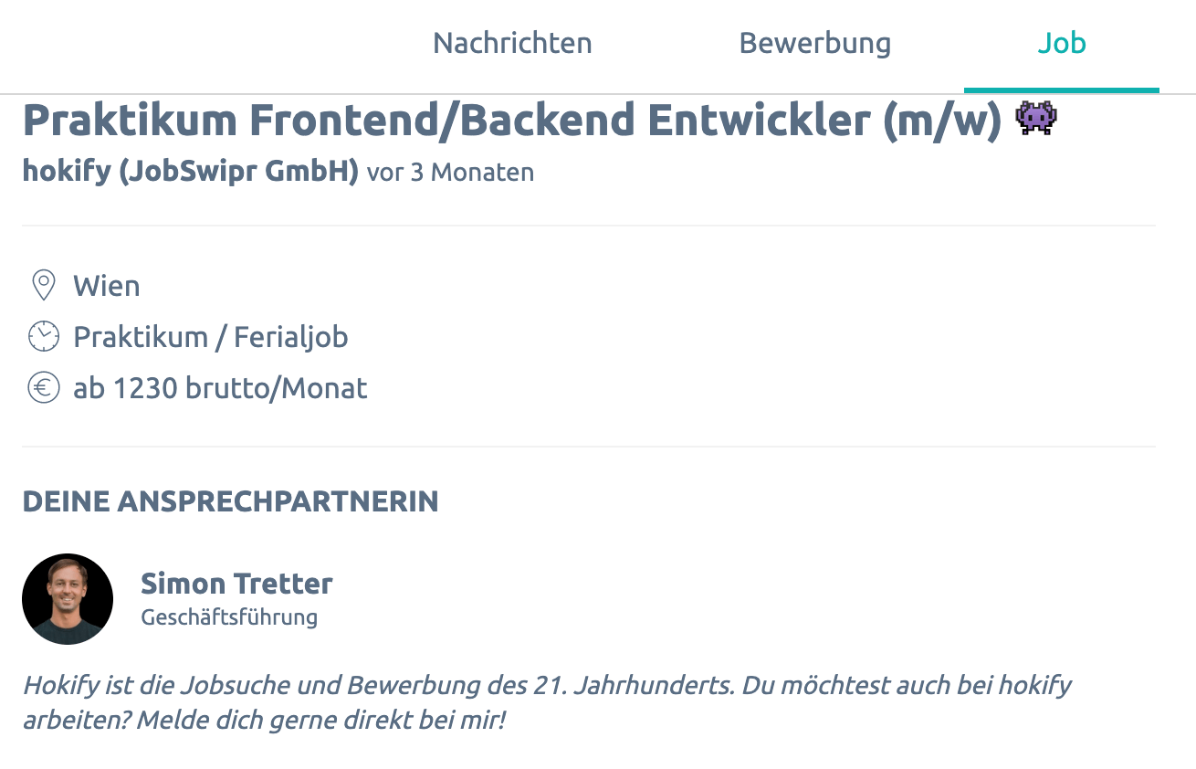 Du möchtest mehr Details über eine offenen Stelle erfahren? Sowohl in den hokify-Apps, als auch auf der Website kannst du weitere Informationen zu Job und Unternehmen erhalten.